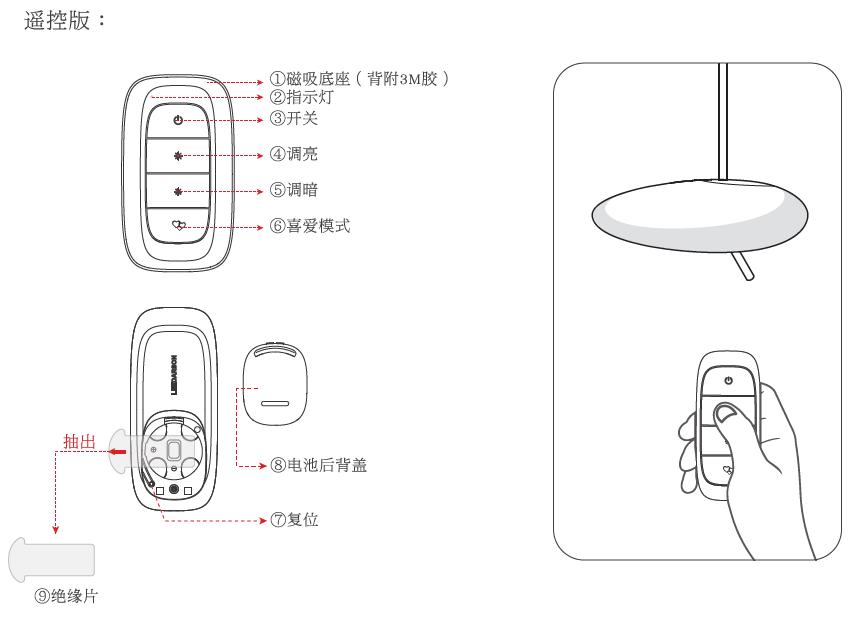 膨胀螺丝*3;膨胀塑料管*3;接线帽*2;内六角扳手*1;遥控器*1;灯体*1;